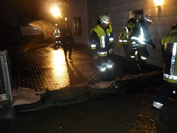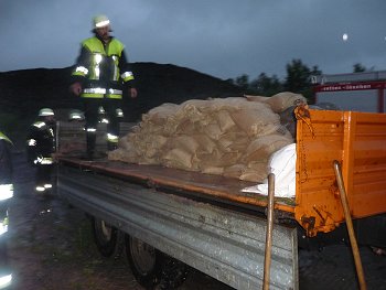 Am Abend des gleichen Tages wurde die Feuerwehr Vierschau noch einmal ins Gemeindegebiet Regnitzlosau gerufen. Sandsäcke mussten befüllt werden.